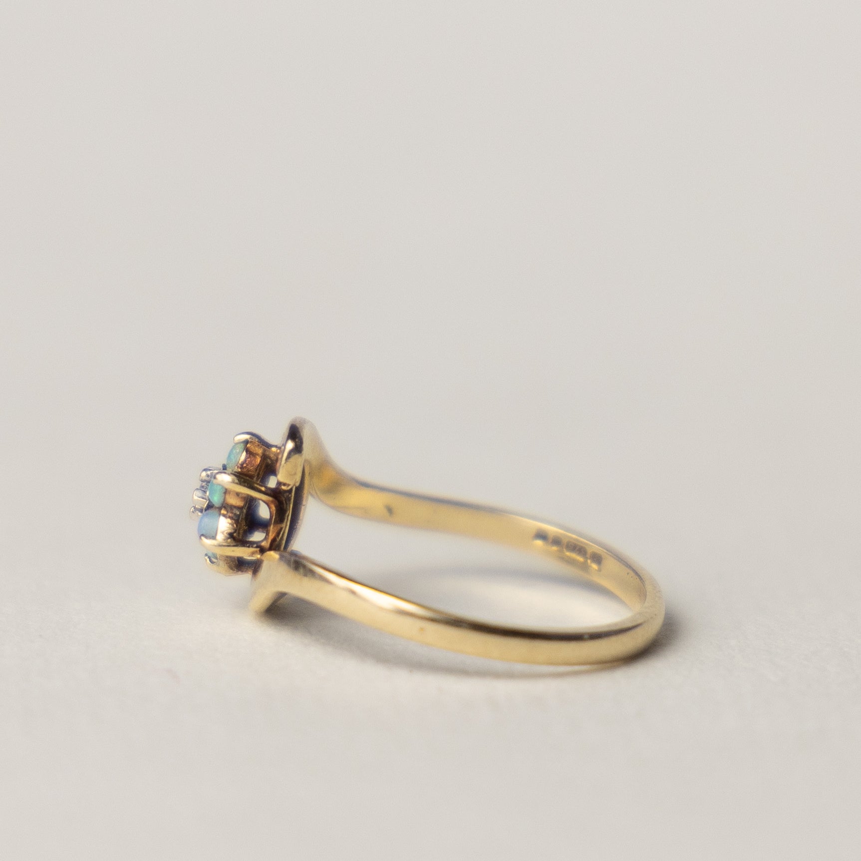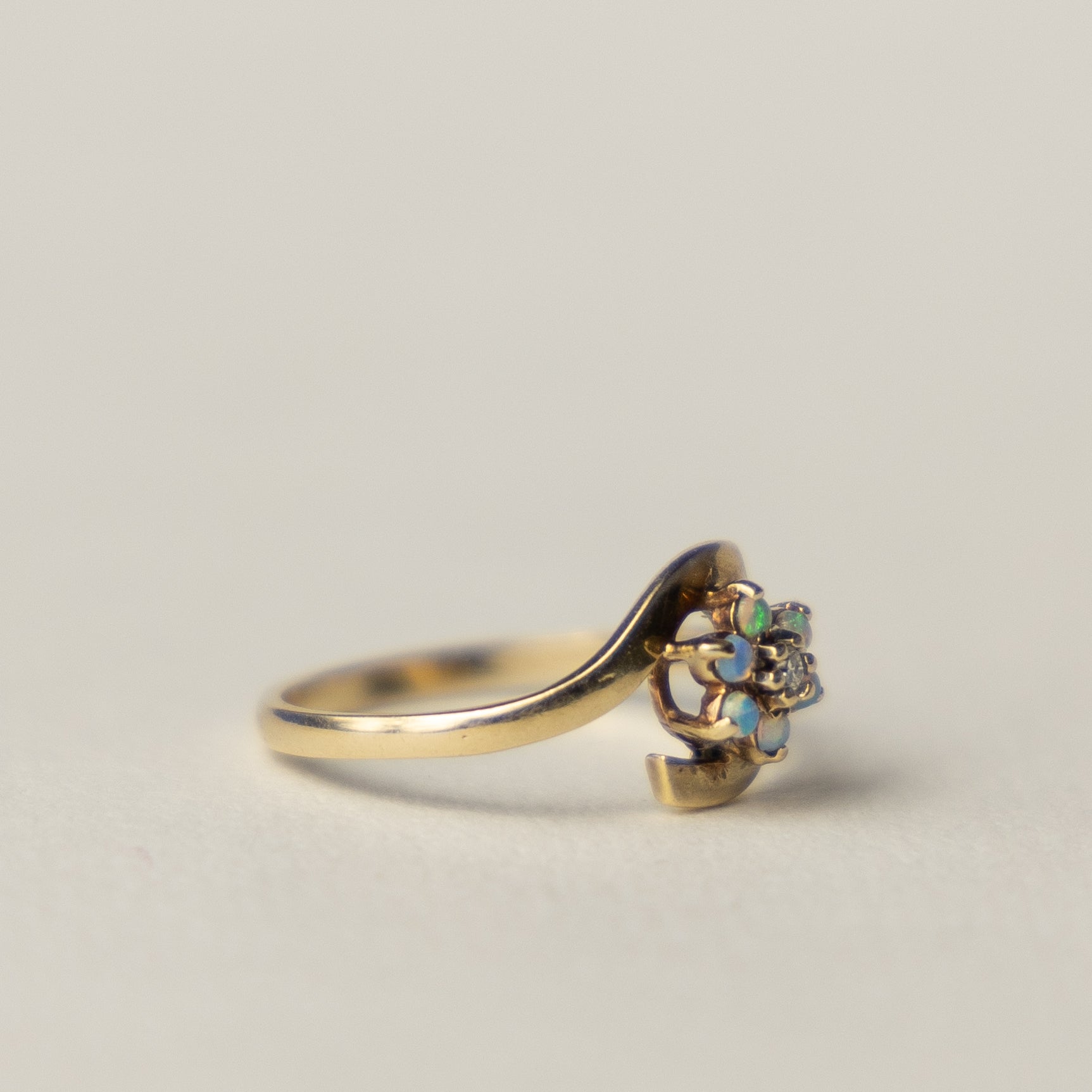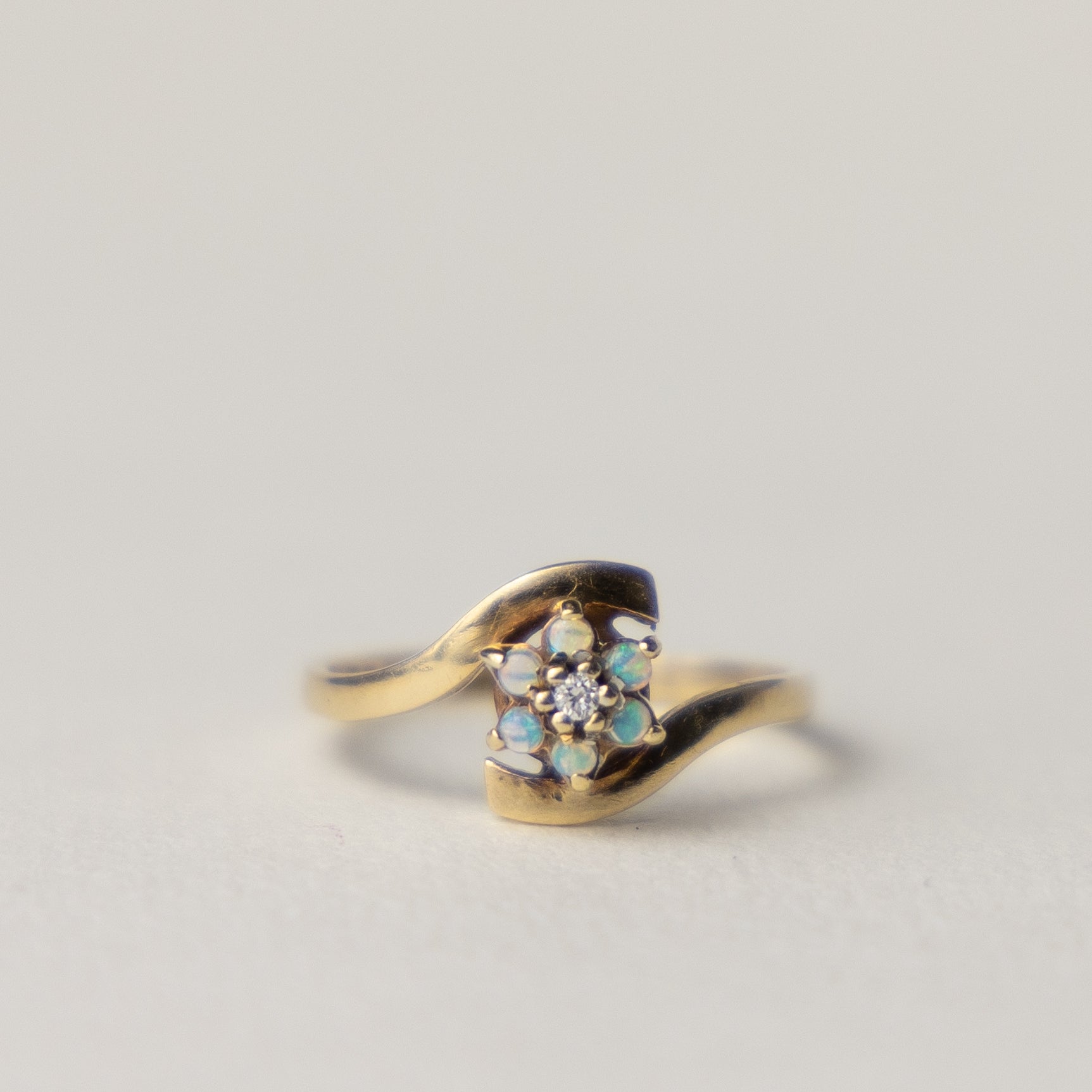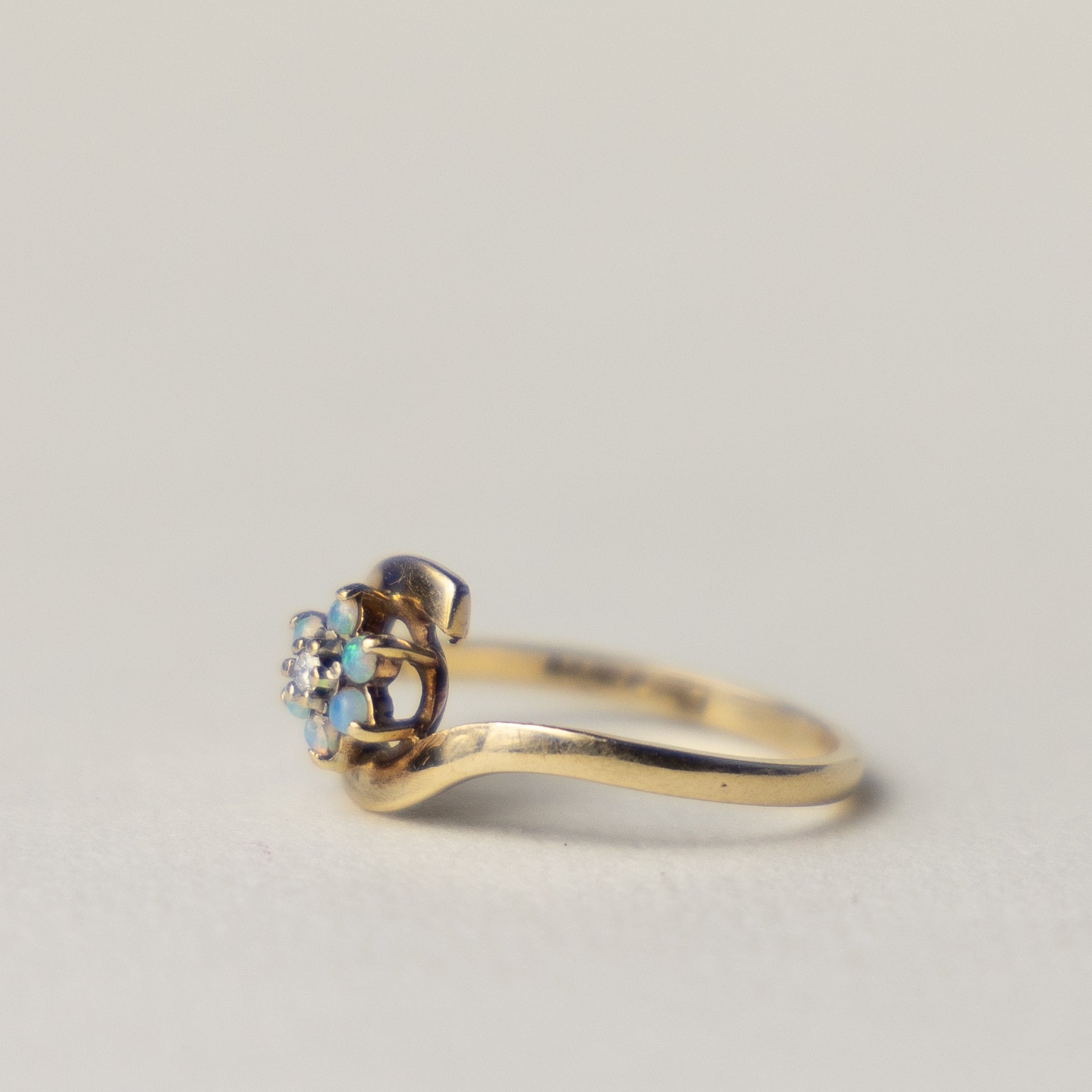 Beautiful vintage 9 carat flower ring with opal and diamond