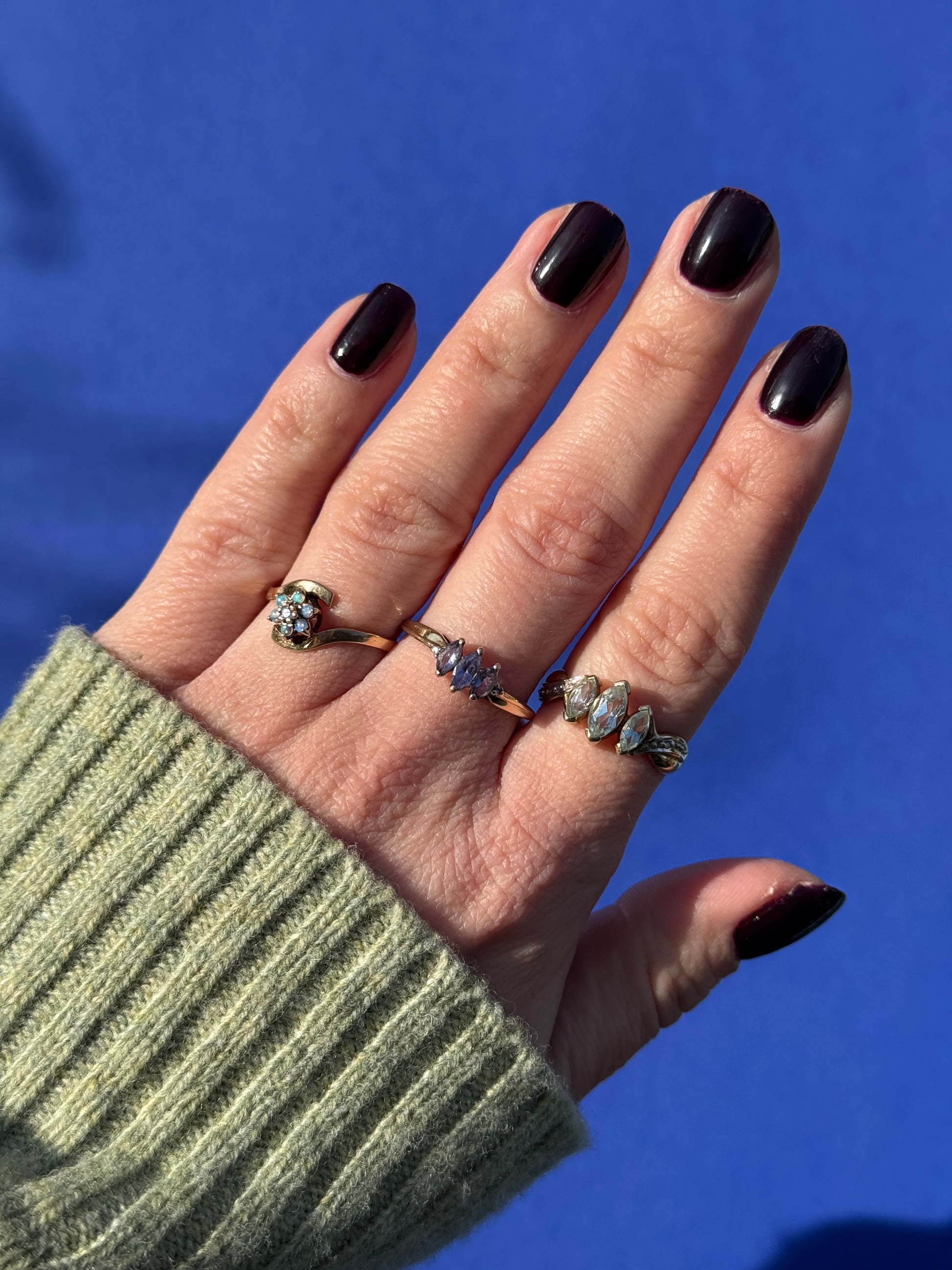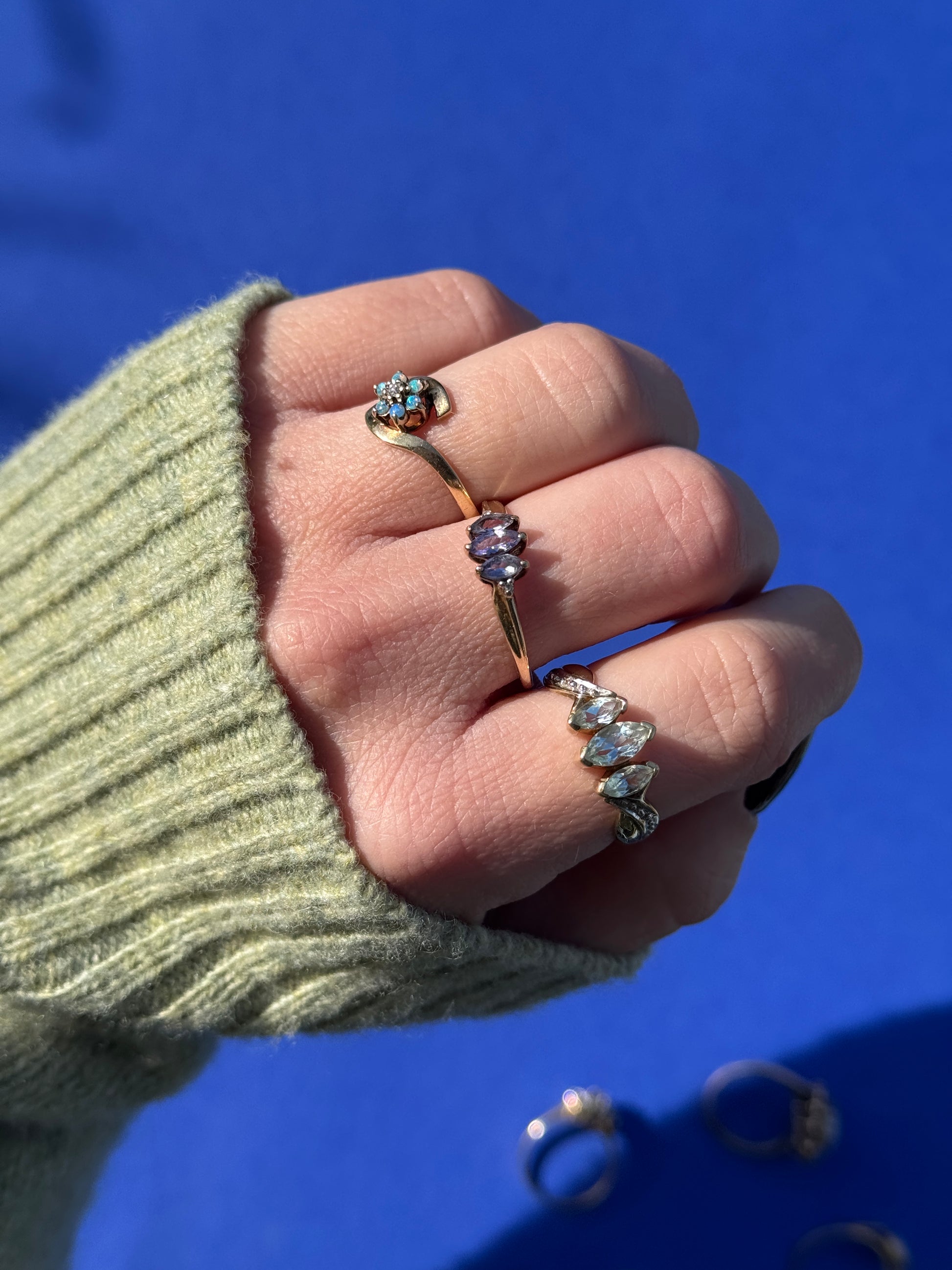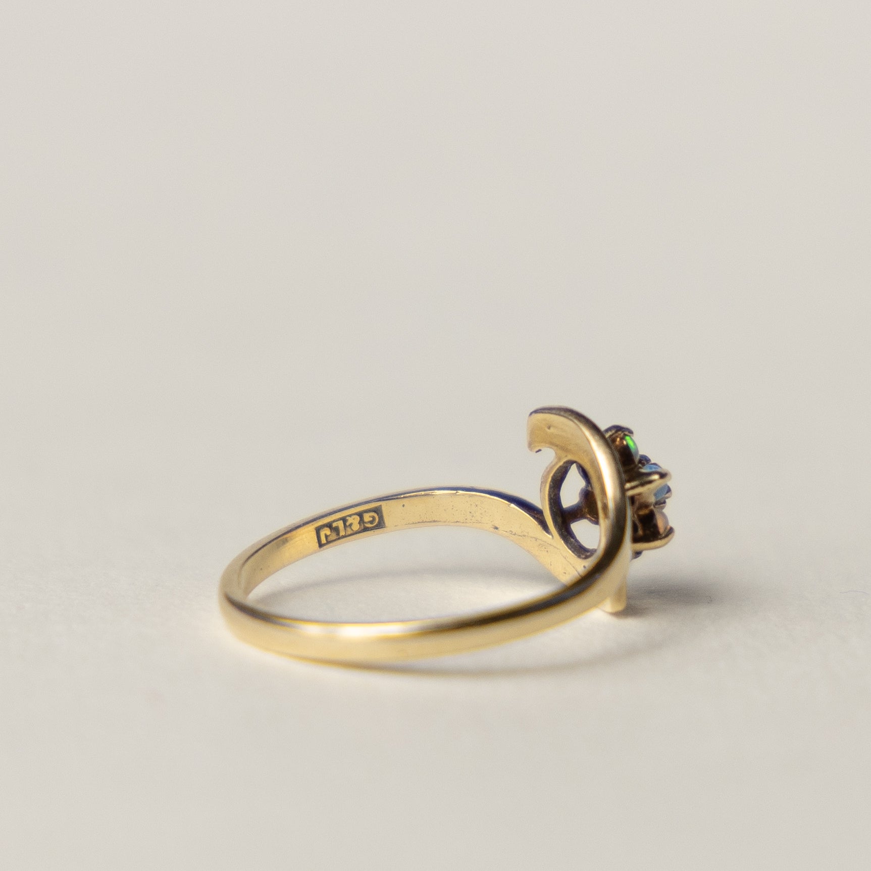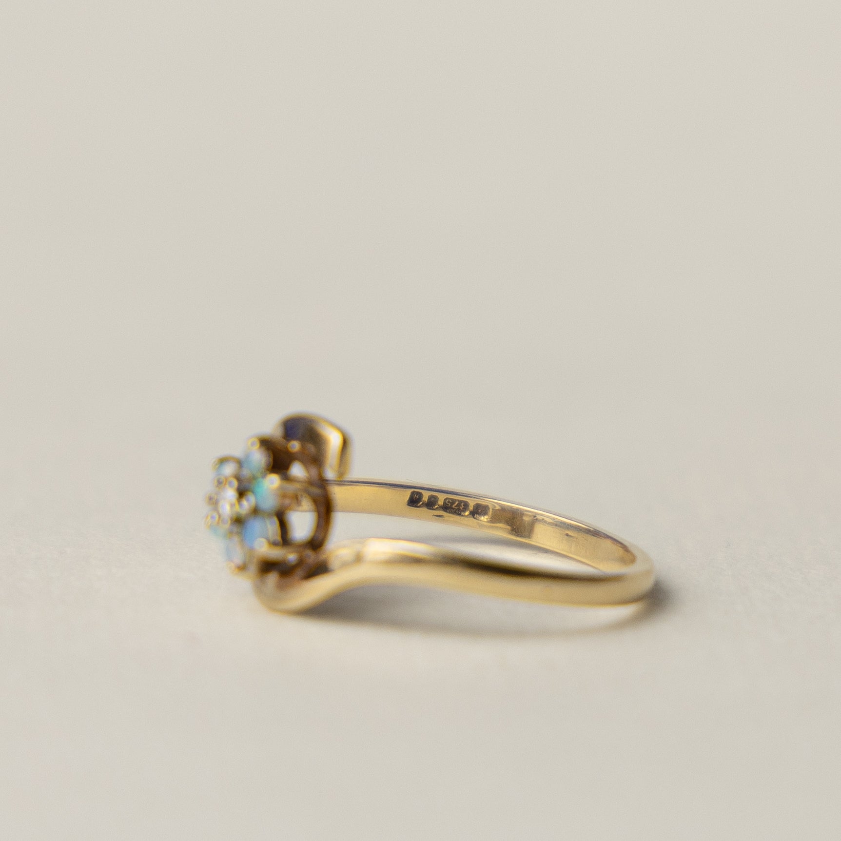 Beautiful vintage 9 carat flower ring with opal and diamond