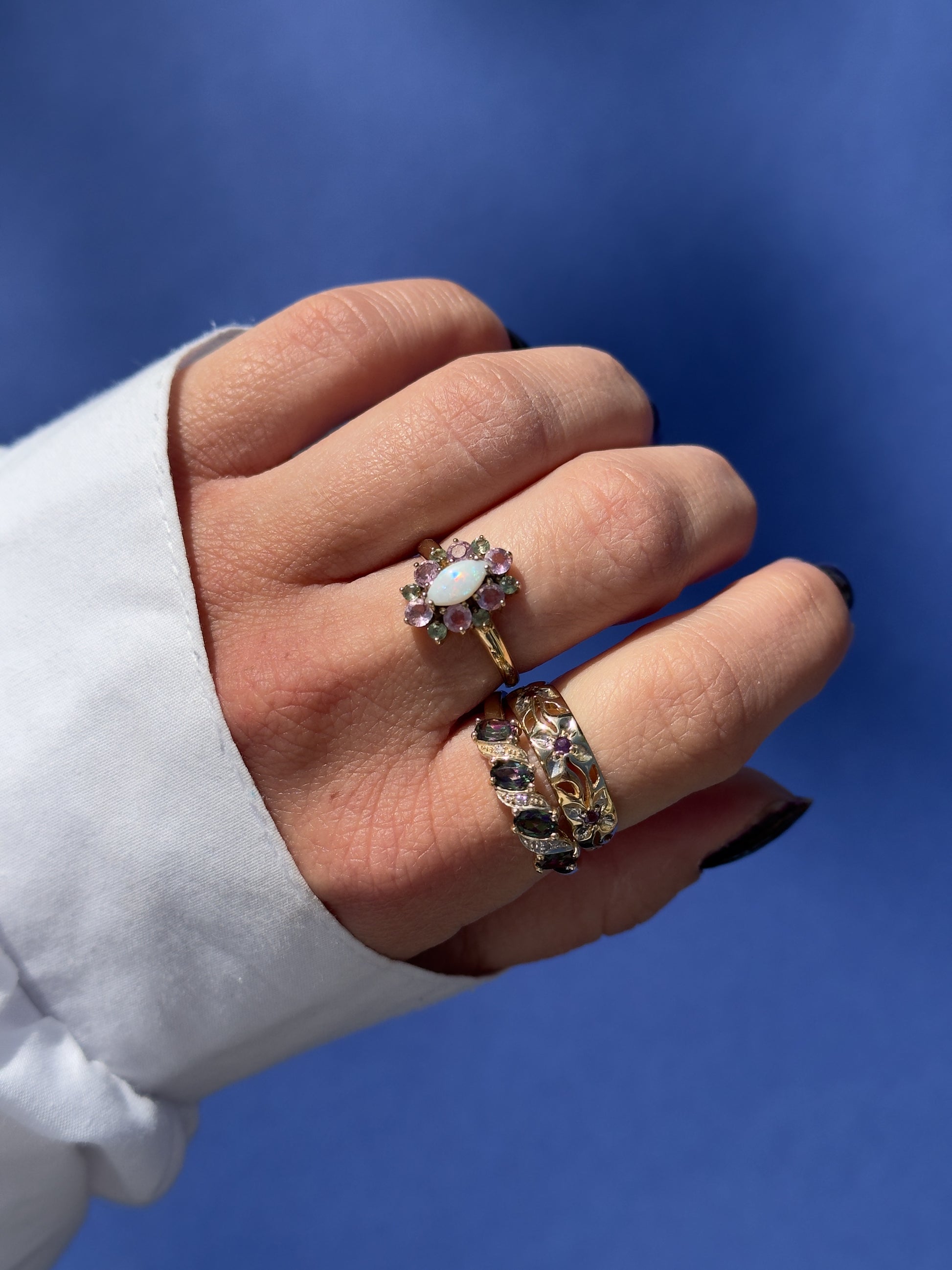 9 carat opal peridot topaz cluster ring