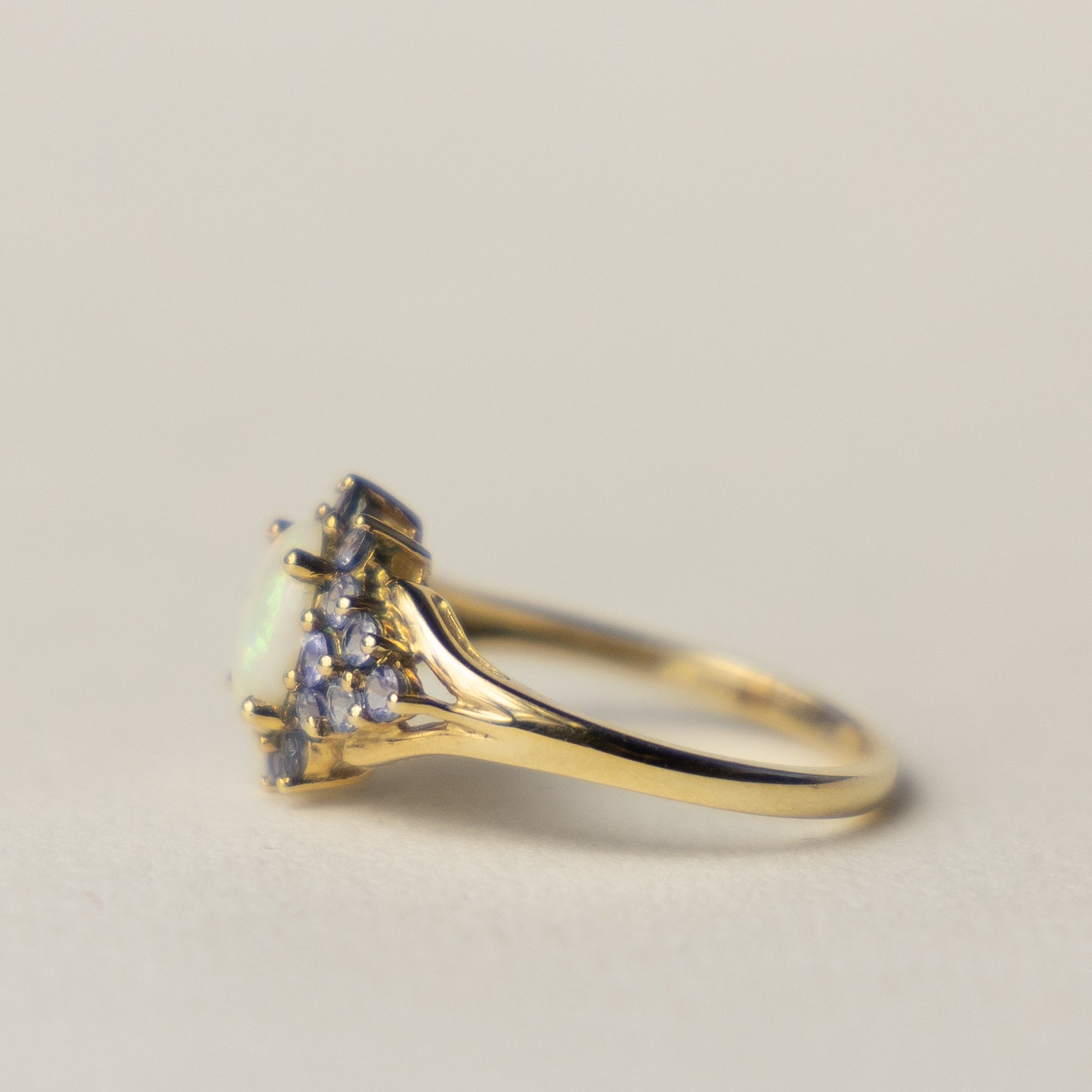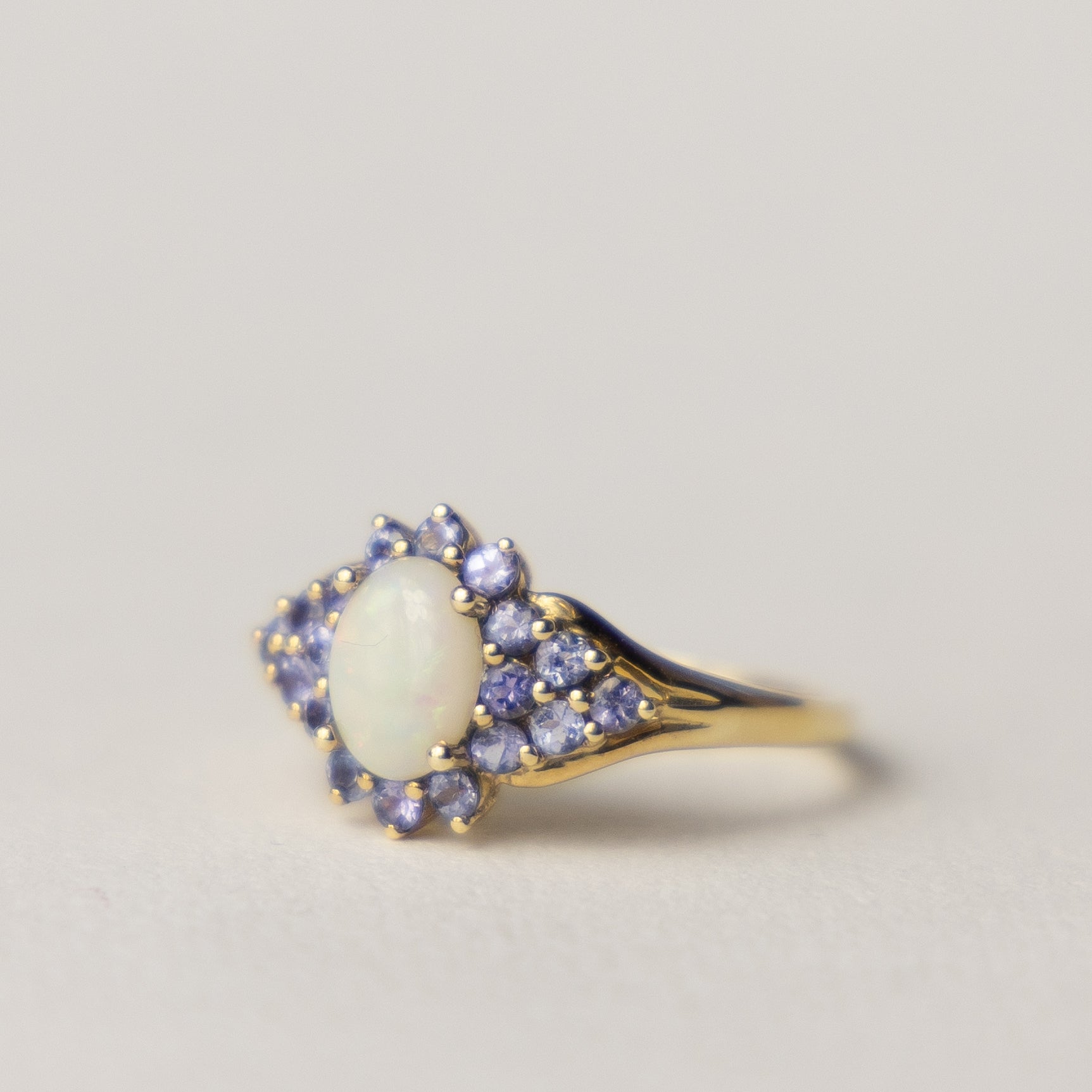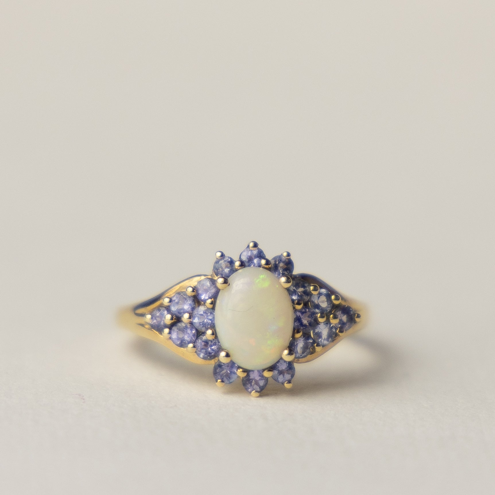 Beautiful vintage 9 carat ring with opal and tanzanite