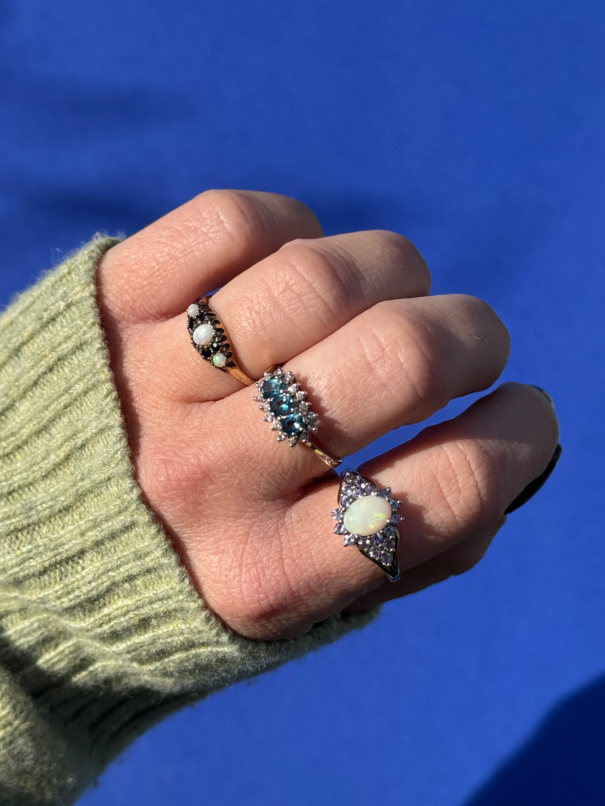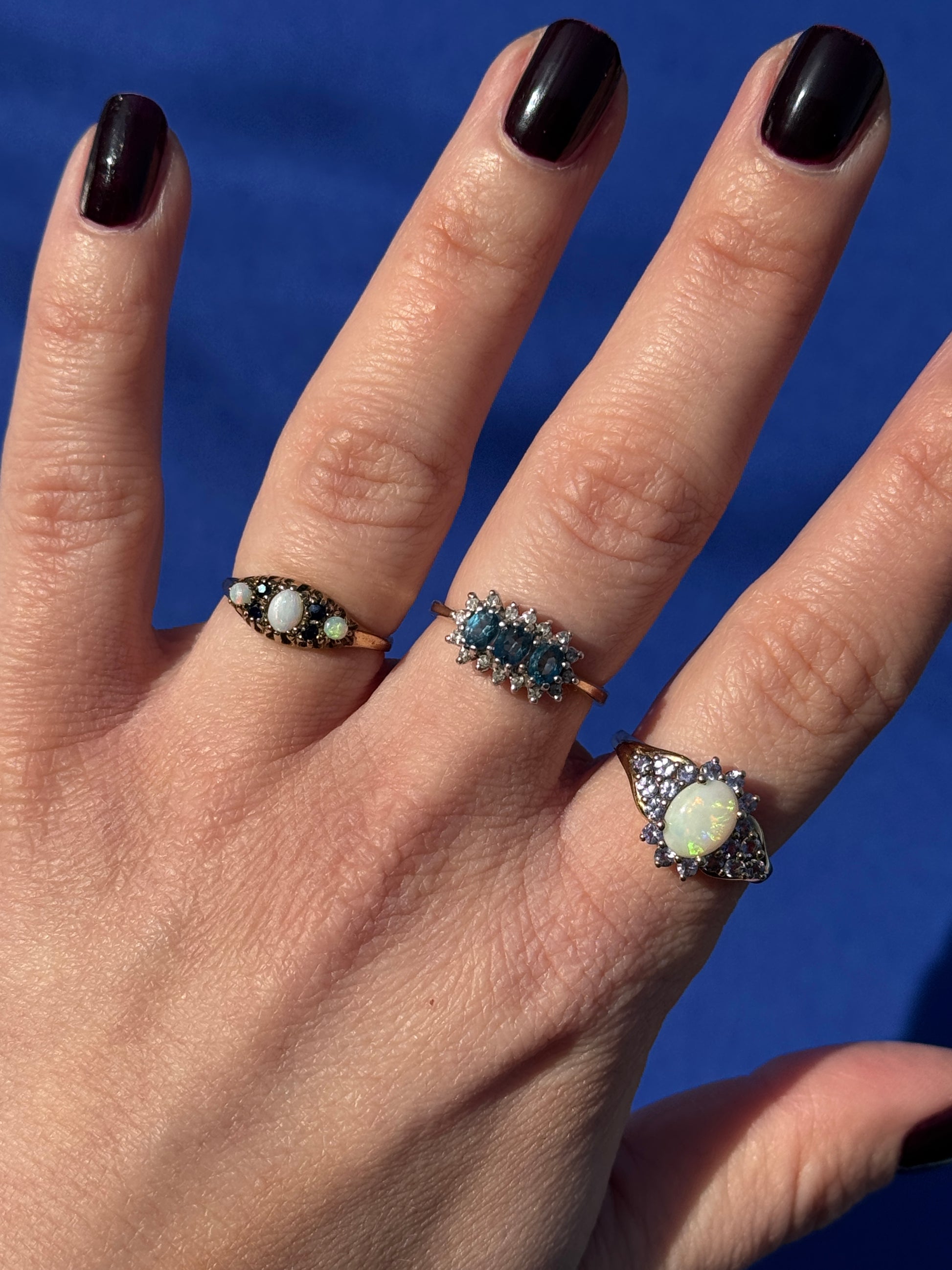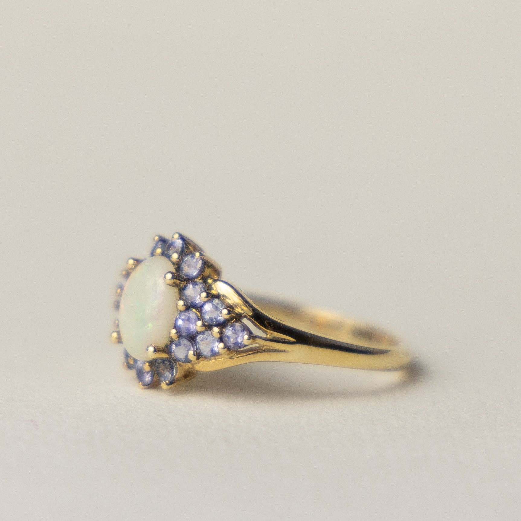 Beautiful vintage 9 carat ring with opal and tanzanite
