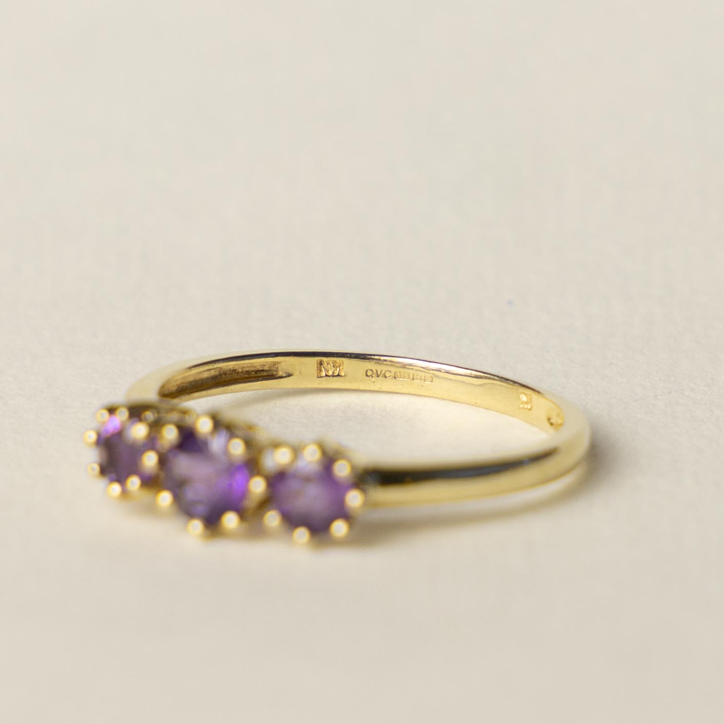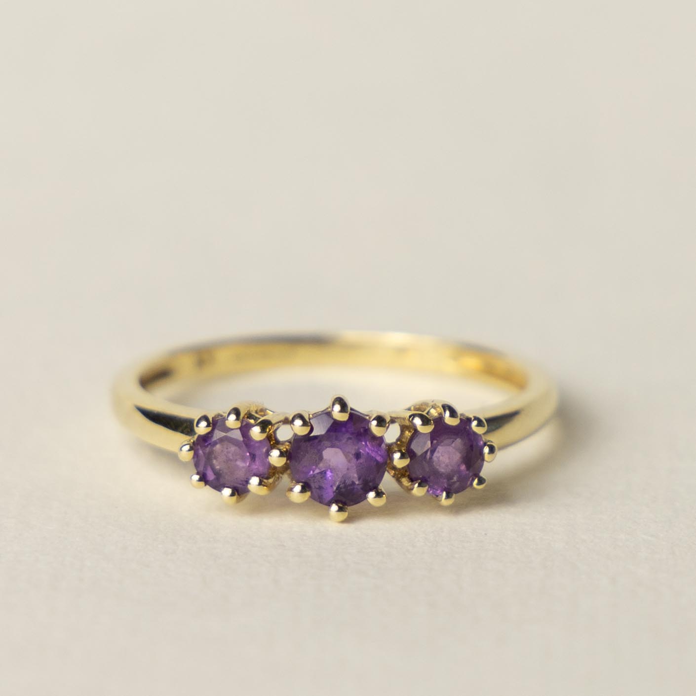 Beautiful vintage 9ct amethist trilogy