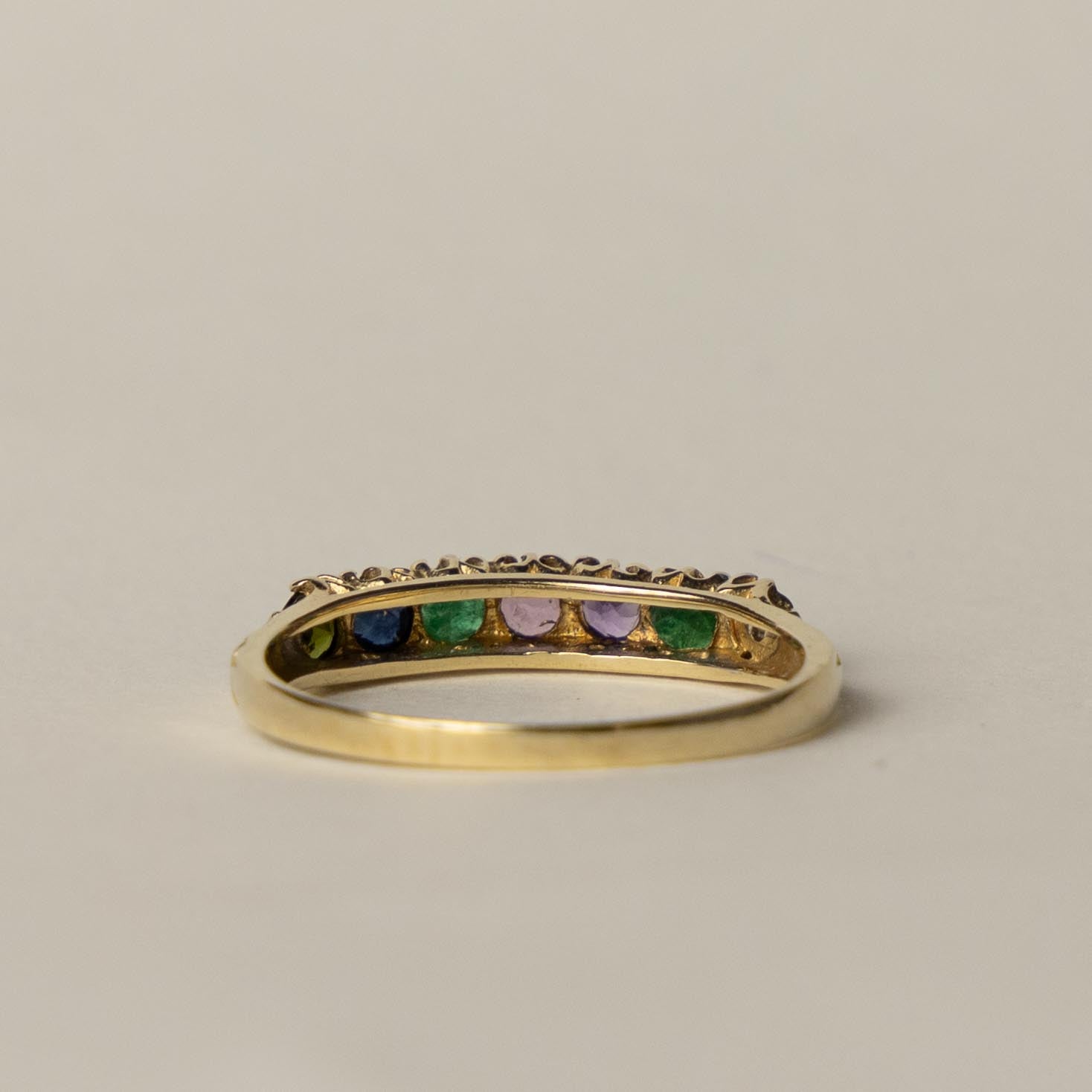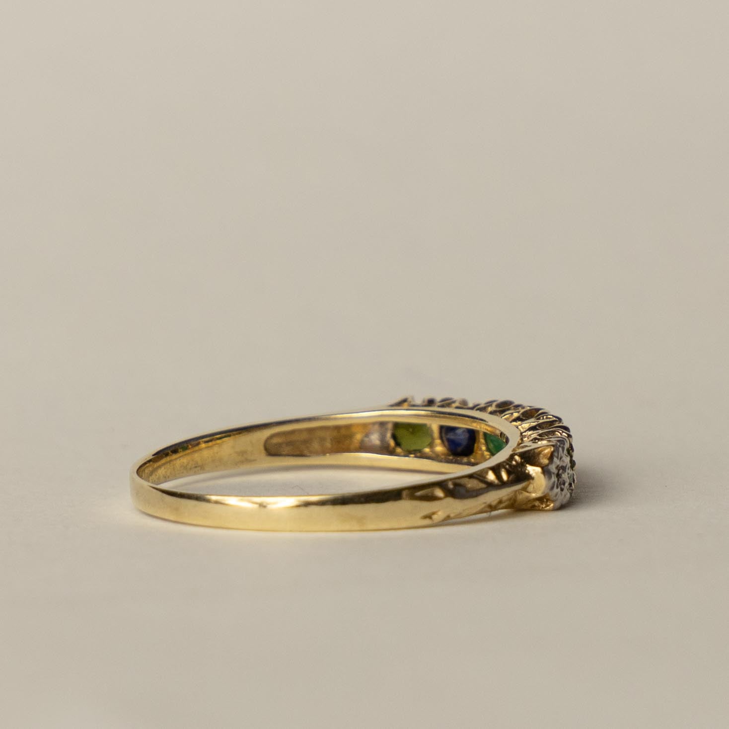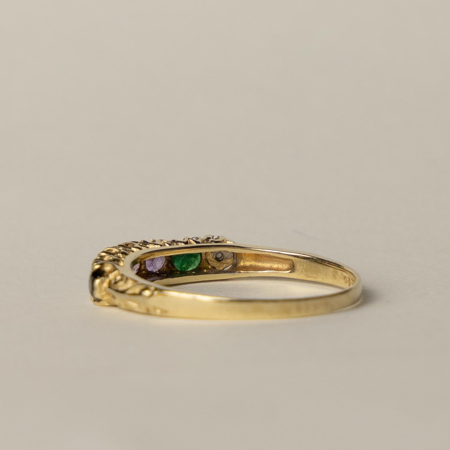This very romantic vintage ring would have been a sentimental gift given to a loved one as a token of affection, and to demonstrate that the giver regarded them as their 'dearest'. Each gemstone represents a letter of the word ‘dearest’.