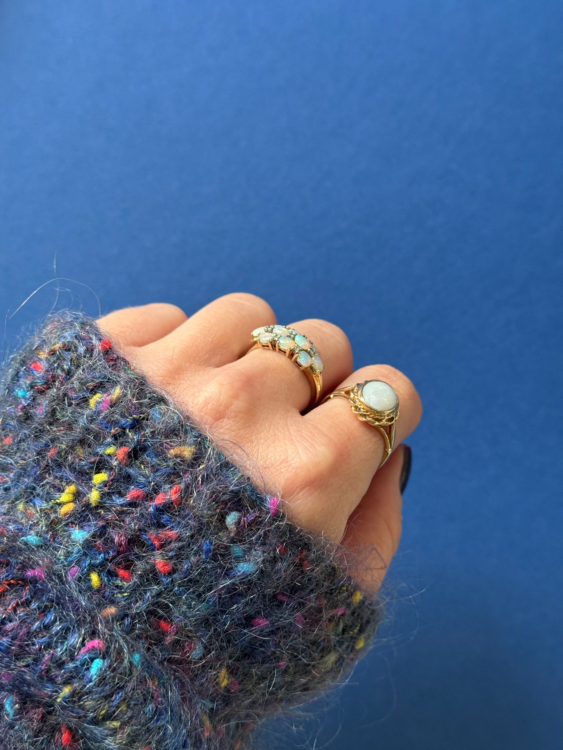 Beautiful vintage 9ct gold ring with a cluster of opal and diamonds.